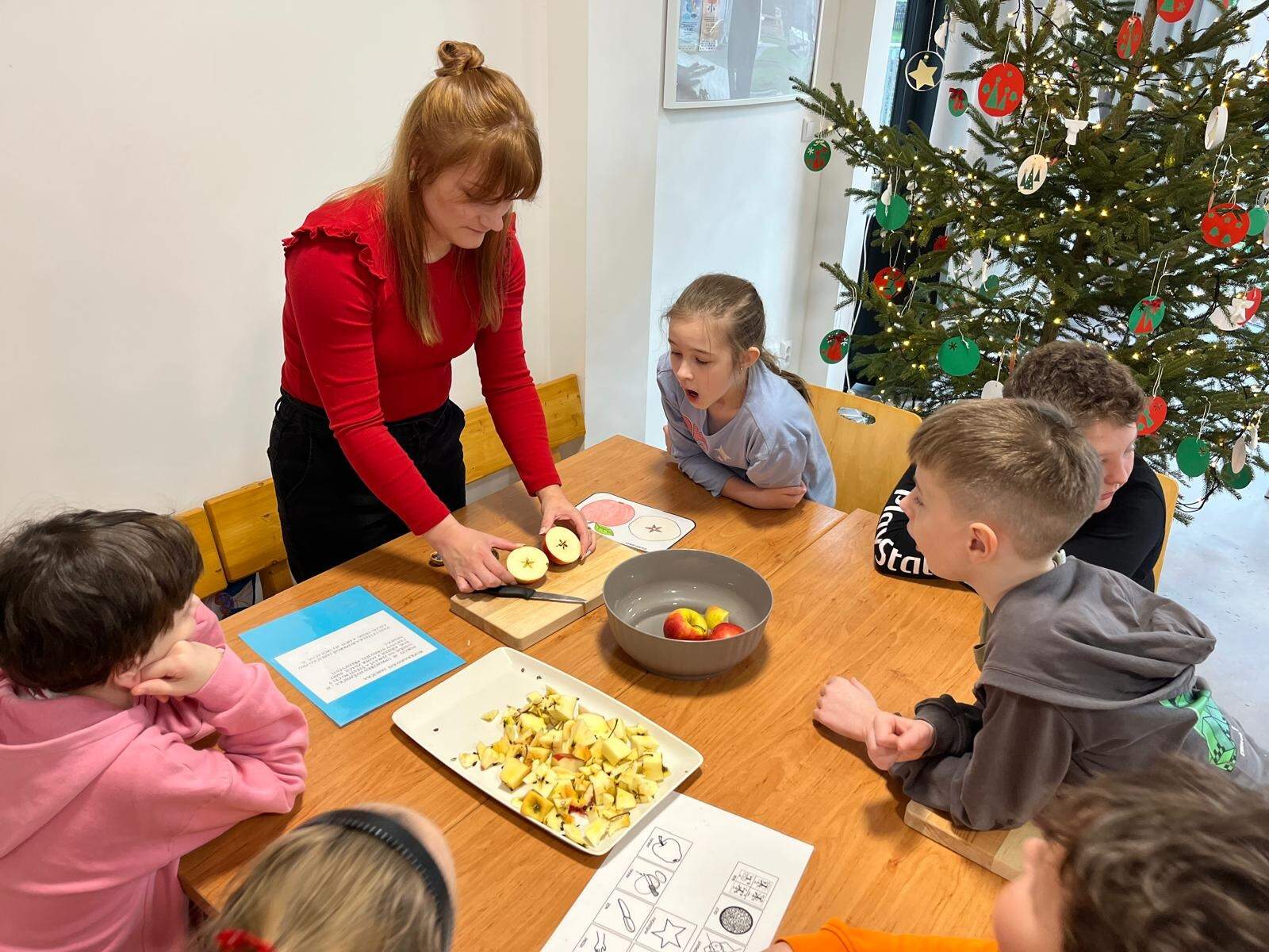 17.12.2025 se uskutečnila již tradiční akce vánočního projektu: Vánoční zvyky a tradice. Krájeli jsme jablíčka, louskali ořechy, házeli střevícem, mazali med na vánočku, abychom zjistili, že budeme v příštím roce zdraví a spokojení. Nejdéle jsme se zdrželi u pouštění lodiček z ořechových skořápek a hrnečků osudu.